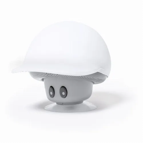 Speaker in an original mushroom design with cap, with mobile phone holder function.