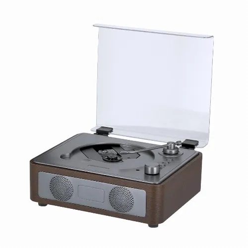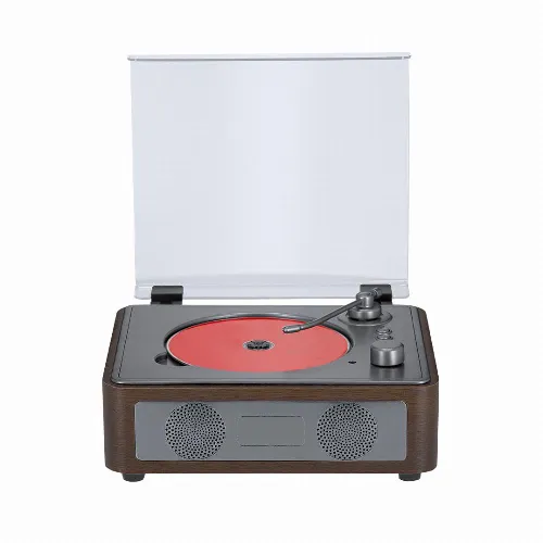Retro CD player made from wood, allowing you to enjoy music while the disc spins under its clear acrylic cover.