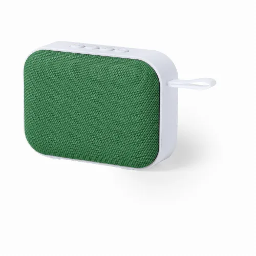 Bluetooth® 5.0 connectivity speaker in bicolor design, with polyester grill and silicone carrying handle in matching color.