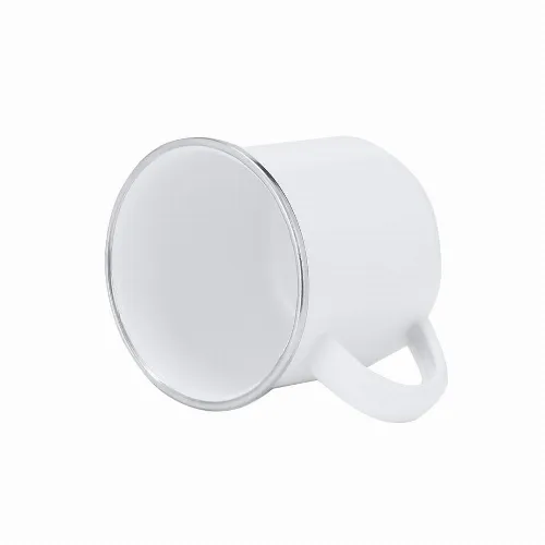 Metal mug with a capacity of 200 ml with a vintage design and glossy white finish with an elegant chrome detail on the edge.