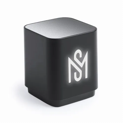 Speaker with Bluetooth® connectivity, inside LED light and body especially designed for laser printing, illuminating the logo.