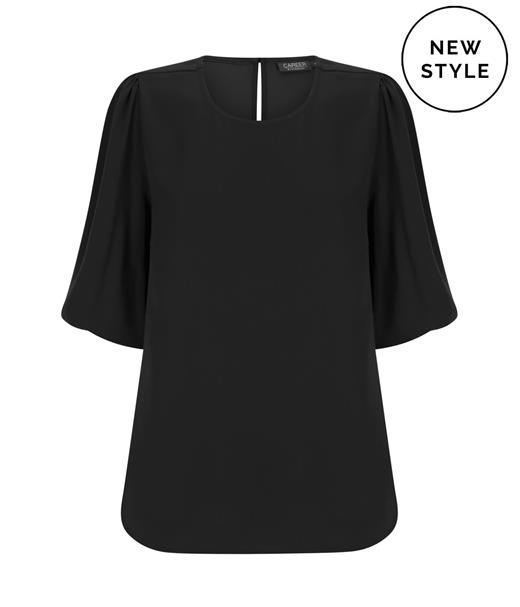 Poppy (New) Recycled Poly Puff Sleeve Top. Sizes: 6 - 30, Colours: Black, Navy, Peacock