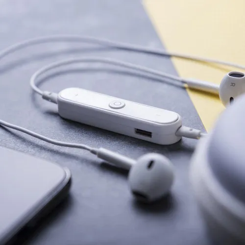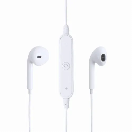 Earphones with bluetooth connection and minimalist design in an elegant white color.